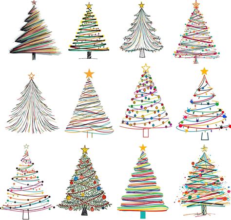 25+ Colorful Watercolor Line-Drawn Christmas Trees Pngs, Printable Digital Downloads, For Commercial Use