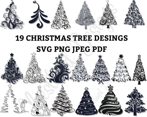 Digital Pattern Bundle Christmas Trees, Including 4 Designs, 12X12 Inches, Printable Digital Craft Paper