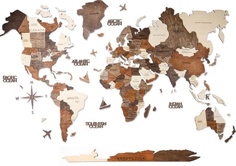World Map - 3D Wooden World Map