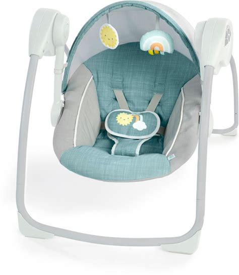 Ingenuity Sun Valley Canopy Portable Swing - Teal: Metal Material, 5-Point Harness, Battery Operated