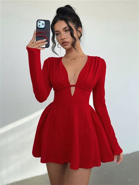 Top suggestions for Long Sleeve Short Red Dress |