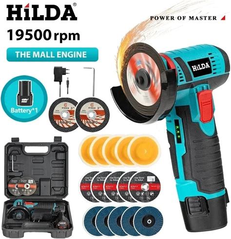 HILDA 12V Miniature Rechargeable Mini Angle Grinder With Battery Cutting Blade Polishing Grinder For
