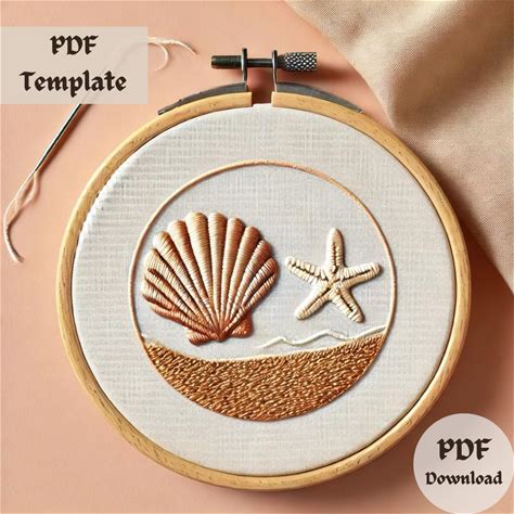 Seashell & Starfish Coastal Embroidery Pattern PDF | Modern Hand Embroidery Design For Beginners