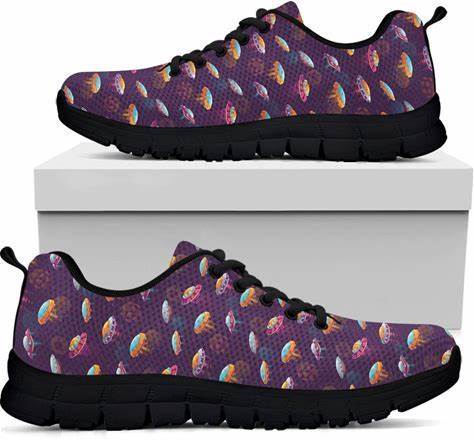Colorful UFO Pattern Print Black Running Shoes