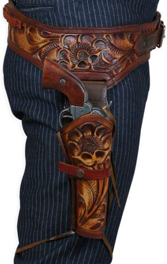 (.38/.357 Cal) Western Holster And Belt - RH Draw - Harvest Tooled Leather-Old West