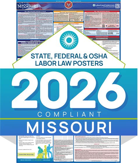 Missouri 2026 Labor Law Poster - State & Federal Compliance - OSHA, EEOC, FMLA, Minimum Wage - Durable, Laminated & Waterproof Workplace Employment