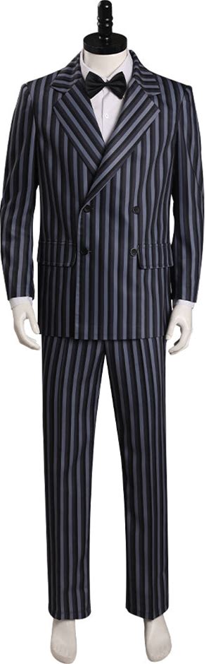 Mens Double Breasted Gomez Addams | Addams Family Costume In Charcoal Grey Pinstripe 34 Short / Grey