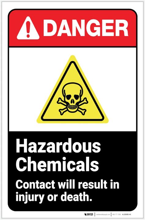 Danger: Hazardous Chemicals - Contact Will Result In Injury Or Death ANSI With Icon Portrait - Label