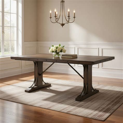 Ral 78 Inch Dining Table, Nailhead Trim, Double Pedestals, Brown