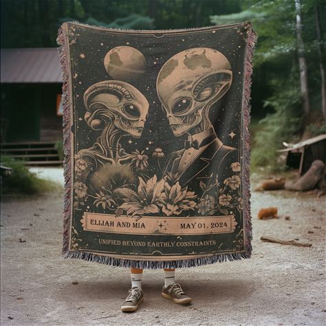 Personalized Alien Couple Woven Blanket: Custom Anniversary Tapestry