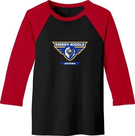 Embry-Riddle College Logo Baseball Tee - Unisex 3/4 Sleeve Black/Red Sport Shirt For Men, Perfect For Fans & Athletes